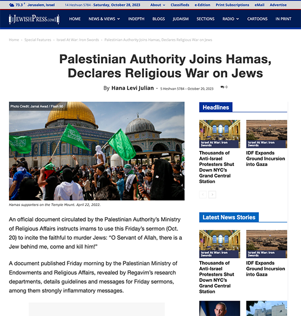 Let's consider for a moment some events closer to Israel. While protests around the world call for Palestine to be free from the river to the sea, is the Palestinian Authority an innocent bystander to these atrocities?